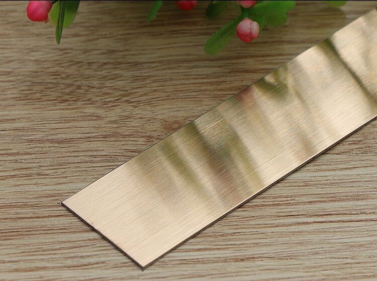 This is a PVD hairline like self-adhesive stainless steel strips.They are thin,flexible strips of stainless steel with a high-performance, pressure-sensitiveadhesive backing protected by a release liner. It's width can be slitted into10/15/20/25/3Omm or customized,5 mters per roll.They are designed for easyapplication to various surfaces to provide a durable, modern, and easy-to-cleanmetallic finish.We also provide different color for you to choose,such assilver,gold,rose gold and black etc.